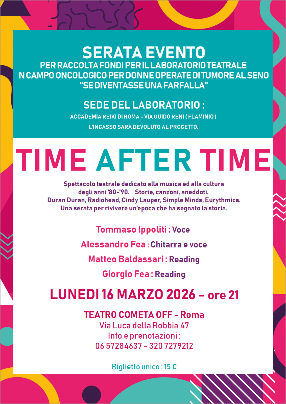 SERATA EVENTO PER RACCOLTA FONDI PER IL LABORATORIO TEATRALE IN CAMPO ONCOLOGICO PER DONNE OPERATE DI TUMORE AL SENO "SE DIVENTASSI UNA FARFALLA"