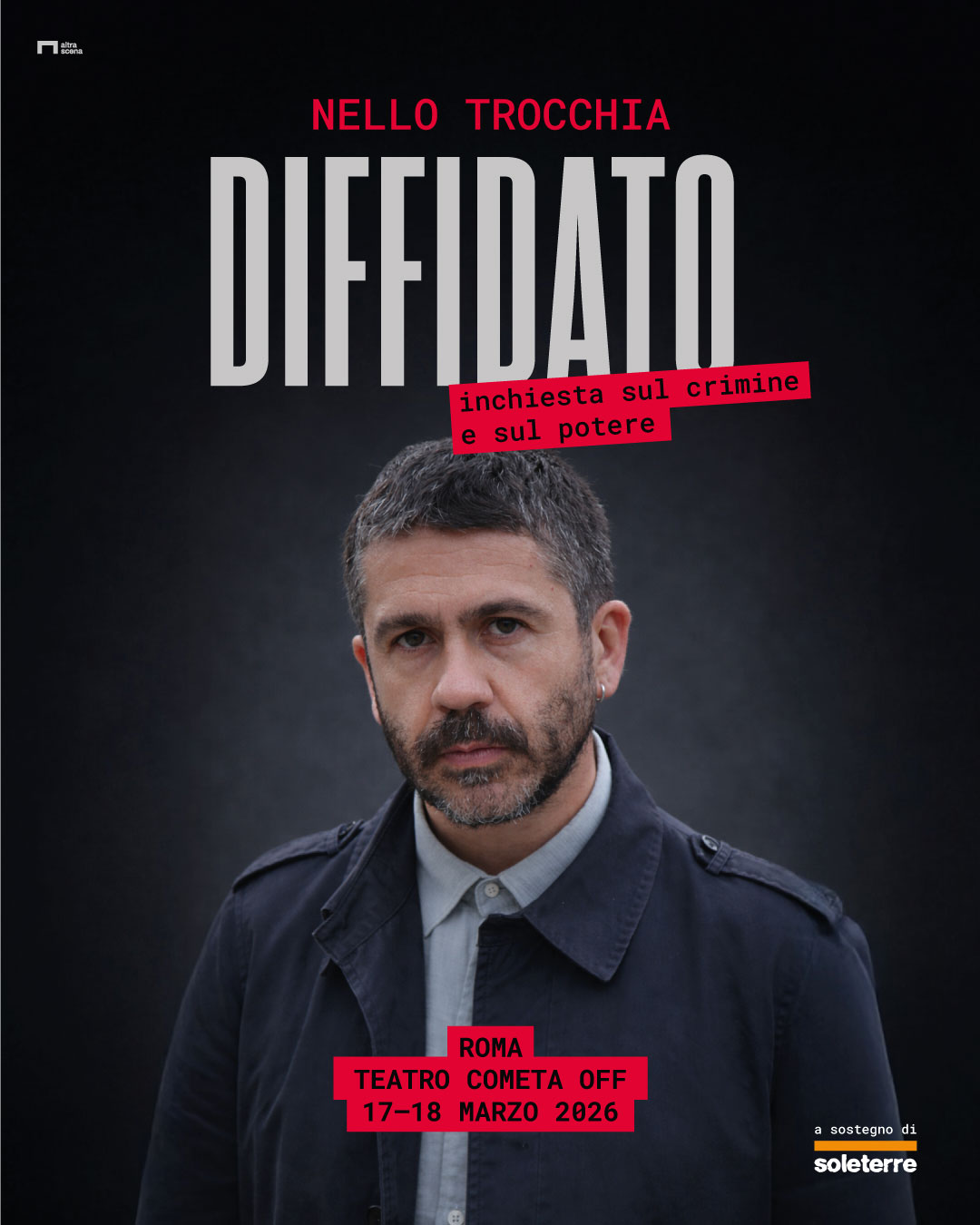 Nello Trocchia, cronista investigativo e antimafia, porta a teatro un racconto spietato e ironico del paese guidato dalle destre. Dai criminali in fuga dorata agli affari tra partito di governo e destra estrema, dalle botte in carcere con garanzia d'impunità alla repressione in strada con una certezza: se non sei comprabile bisogna abbatterti.