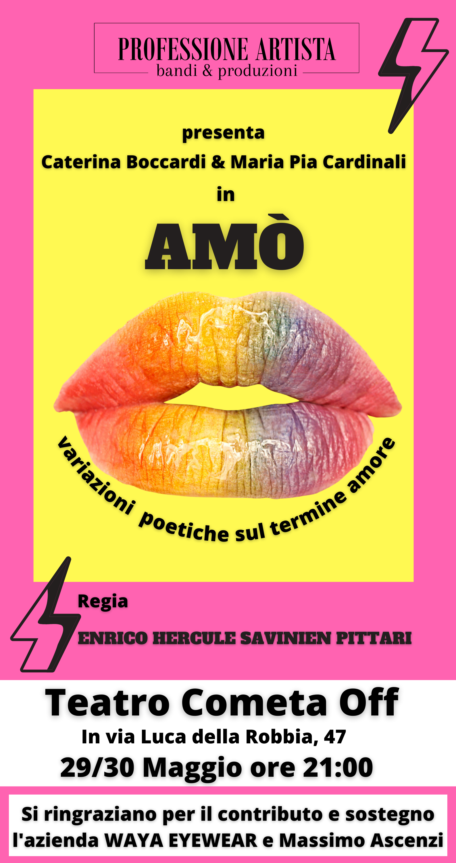 Due attrici, Caterina Boccardi e MariaPia Cardinali mettono in scena AMO’ una sorta di ‘Two women show’ tratto da due loro racconti. Un testo teatrale unico e compatto, incentrato sul tema dell’amore inteso come concetto universale ma che rimane per certi aspetti, un sentiero incomprensibile.