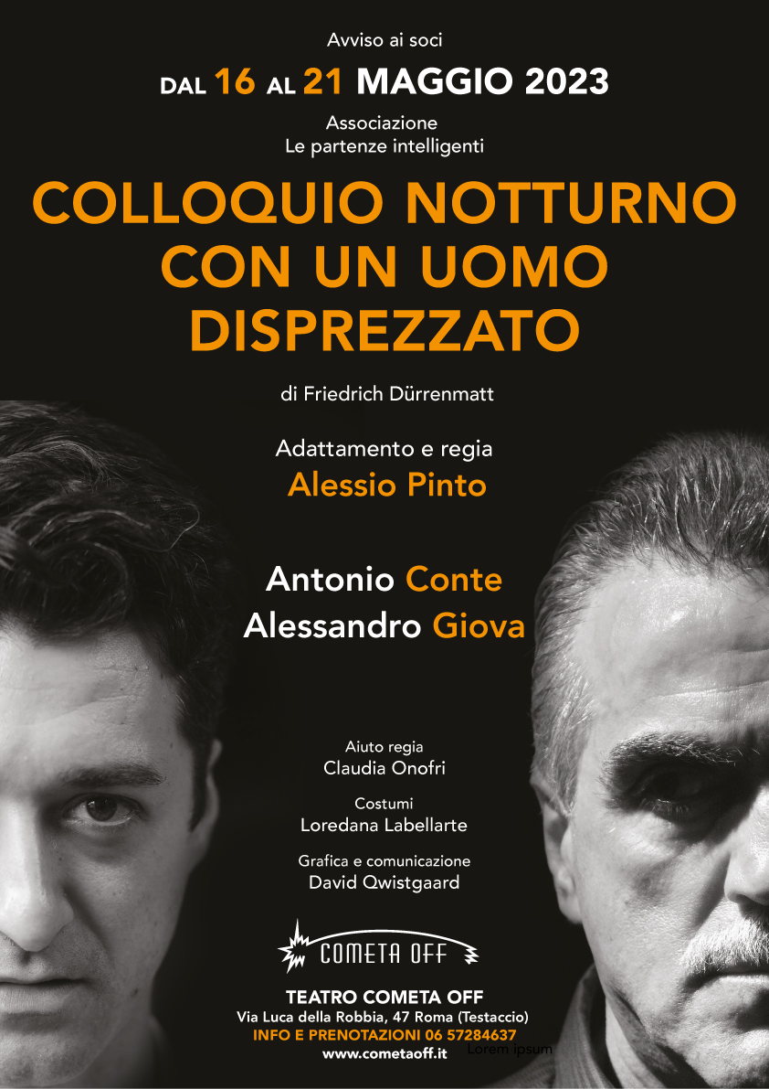 Scritto nel 1951 come radiodramma da Durrenmatt, “Colloquio notturno con un uomo disprezzato” tratta un tema molto caro all’autore, quello legato alla chiusura alla cultura e alle mille insidiose strade che prende il potere, in ogni sua forma.