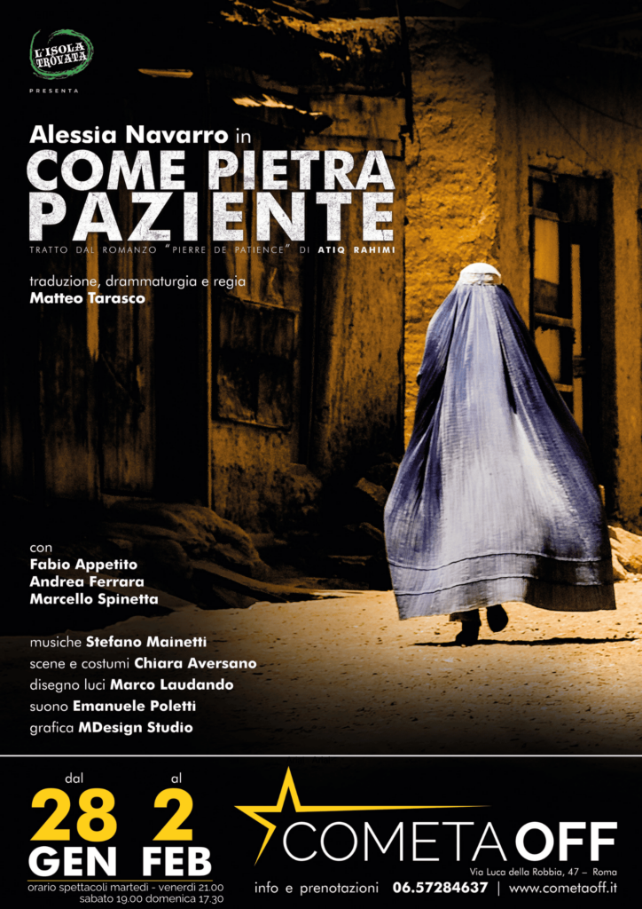 Mettere in scena Come Pietra Paziente significa ricordare che le parole bruciano, che le parole si fanno carne mentre noi parliamo e quindi anche parlare, anche raccontare una storia, è un gesto fisico e corporale. Fare teatro oggi ci ricorda che il valore della parola si riconosce nel silenzio dell’ascolto.