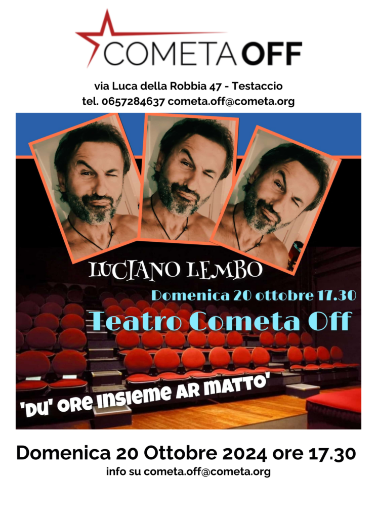 Dopo l’indimenticabile “tombolata” del 26 dicembre il mitico Luciano si ripresenta sul palco del Cometa Off con un nuovo spettacolo e con la voglia di far divertire il pubblico con la sua comicità spontanea e dirompente.