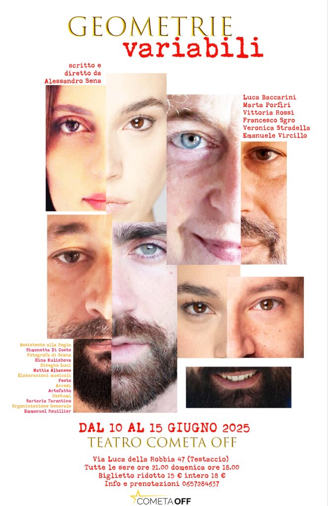 A queste domande risponde GEOMETRIE VARIABILI, il nuovo progetto teatrale scritto e diretto da Alessandro Sena, che porta il pubblico nel cuore di un laboratorio di creazione, svelando i retroscena di una messa in scena e le sfumature meno note della costruzione di uno spettacolo teatrale.