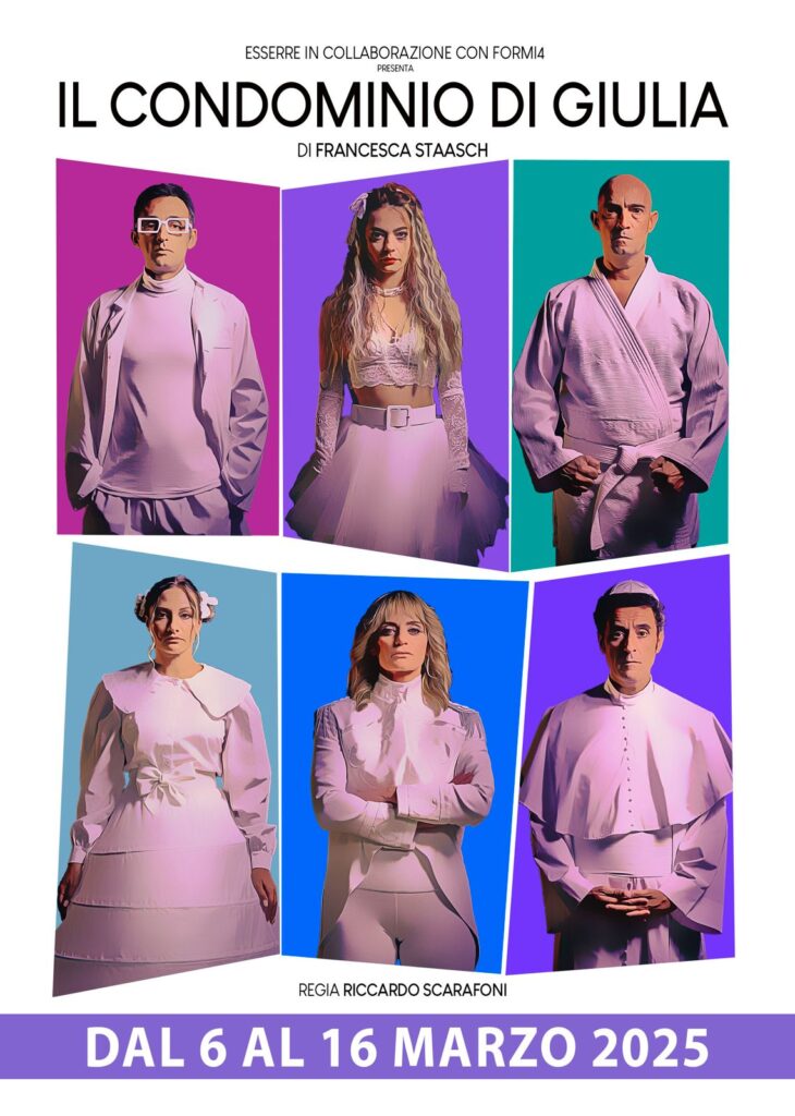 Coscienza, Razionalità, Senso di Colpa, Speranza, Sistema Nervoso e Cuore, sono i condòmini di Giulia, un’autrice televisiva quarantenne chiamata a prendere una decisione sofferta. Sono loro che vivono e agiscono nella testa di Giulia, loro che prendono per mano la donna – ma anche gli spettatori in platea – e tra scontri, confronti e litigi alla fine decidono. Insieme. Il Condominio di Giulia – scritto da Francesca Staasch e diretto da Riccardo Scarafoni – è uno spettacolo unico nel suo genere, per intensità, per emozione, per coraggio.