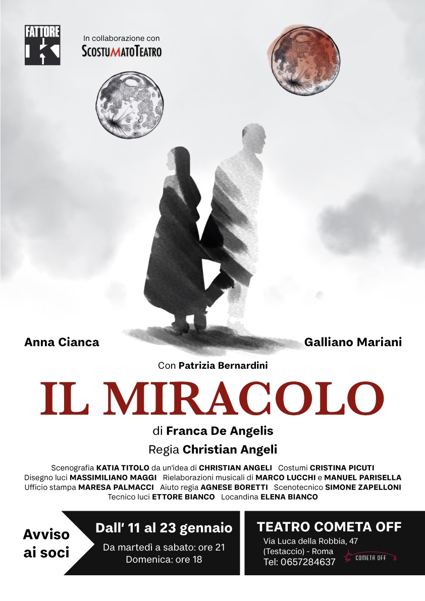 Il miracolo tocca temi di scottante attualità, come il diritto a decidere del proprio fine-vita e la possibilità per le coppie gay di avere figli. Ma è soprattutto uno spettacolo sull’elaborazione del lutto e sulla fede, intesa come speranza attiva e come tale costruttrice di realtà.