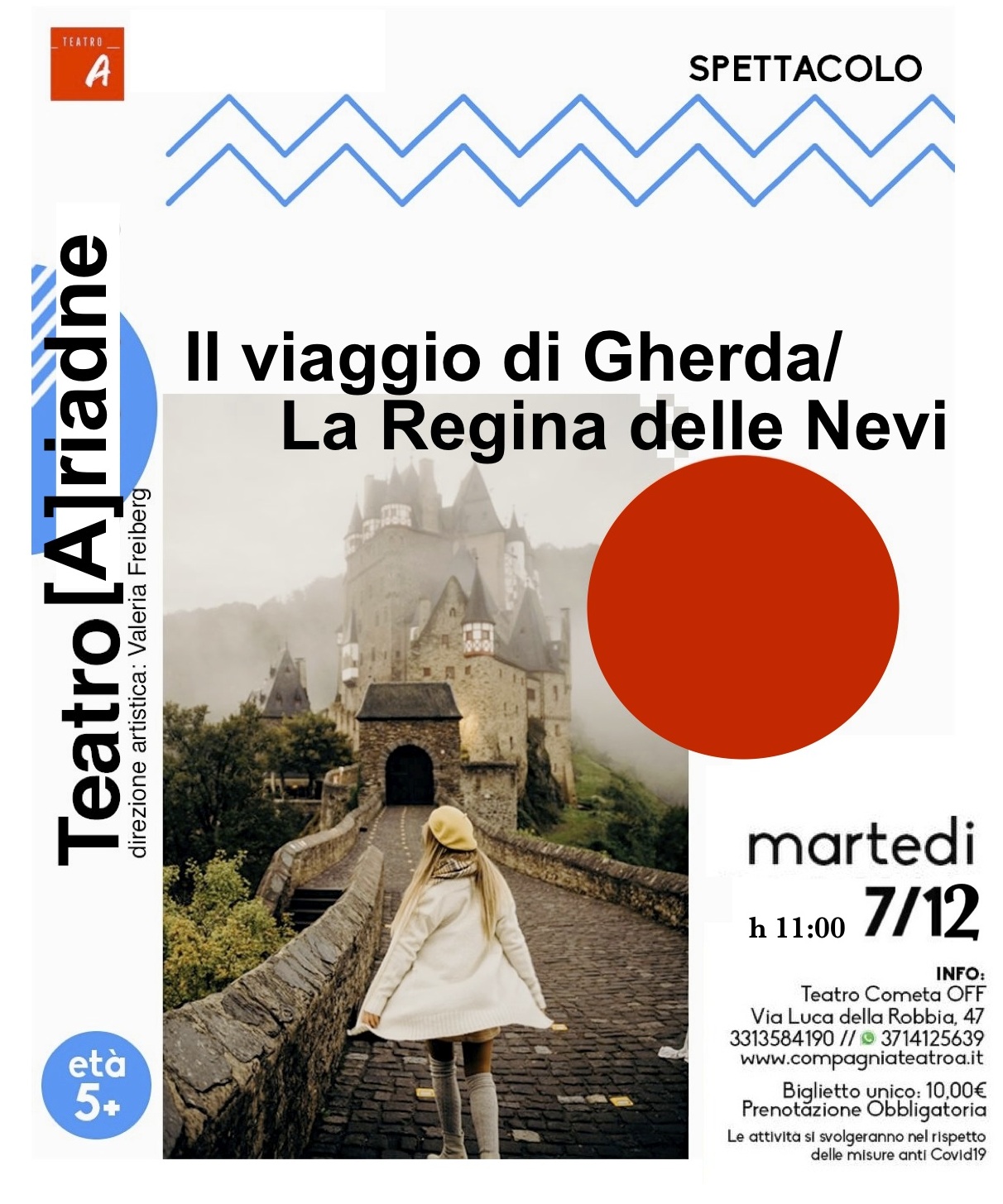 Il 7 dicembre due spettacoli al Teatro Cometa Off di Roma, nell’ambito della rassegna ProjectSCUOLA ideata da Valeria Freiberg e dall’Associazione Ariadne – Compagnia Teatro A. Si parte alle ore 11 con la rappresentazione per i bambini (5+) de “La Regina delle Nevi”, la fiaba dello scrittore danese Hans Christian Andersen, nella rilettura dello scrittore e sceneggiatore russo Evgenij L’vovič Švarc. Una storia di coraggio e di amicizia, che spingerà Gerda, protagonista del racconto, a partire alla ricerca dell’amico scomparso Kay, fino al castello della glaciale Regina delle Nevi.