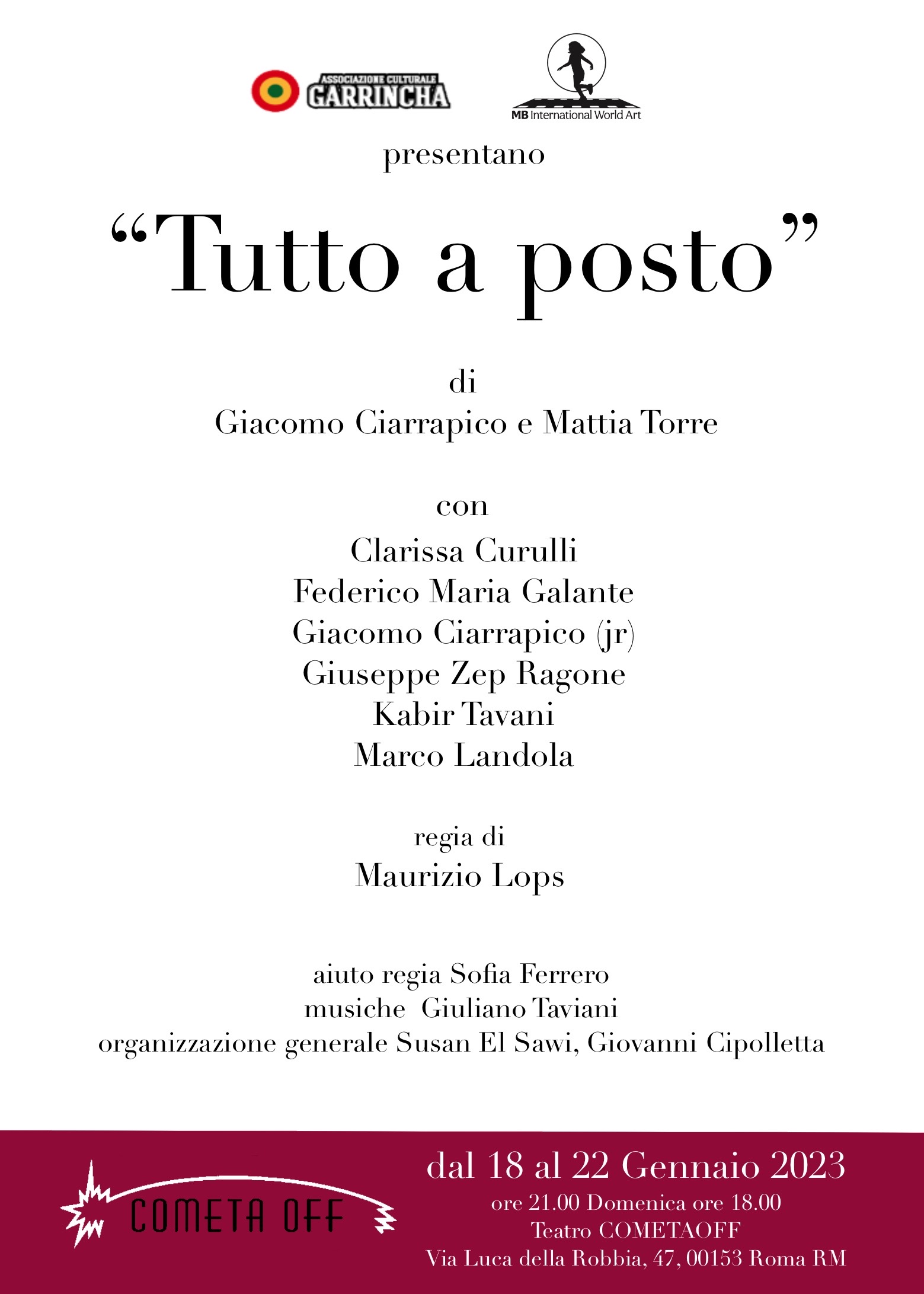 Torna dopo 28 anni “TUTTO A POSTO”, uno spettacolo teatrale brillante interpretato da sei giovani attori del panorama artistico italiano, guidati dall’eccellente penna di Giacomo Ciarrapico e Mattia Torre.