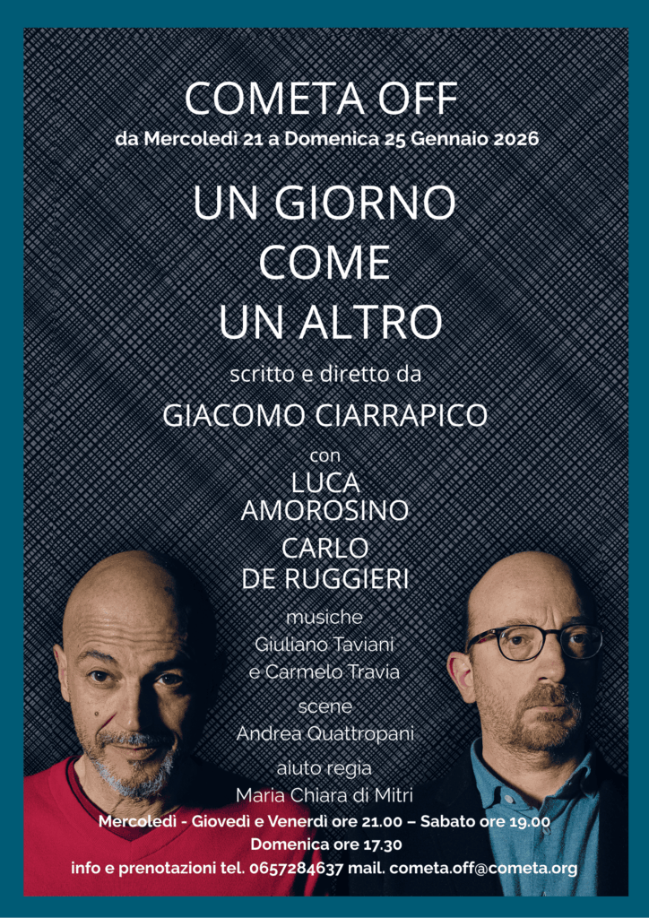 - Dal Mercoledì al Venerdì ore 21:00 – Sabato ore 19:00 – Domenica ore 17:30